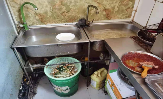 上榜理由:1.后堂卫生脏乱差;2.后堂物品摆放杂乱。