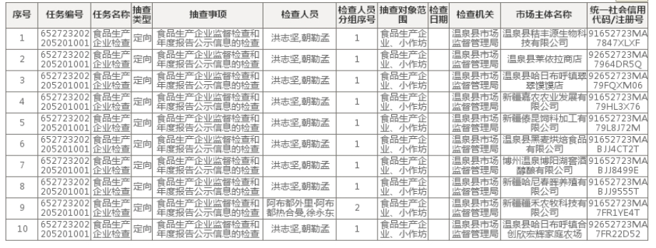 温泉县市场监管局2022年度内部双随机、一公开抽查第三批次任务