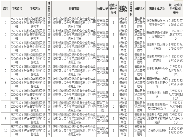 温泉县市场监督管理局开展2022年部门联合“双随机、一公开”抽查任务关于特种设备检验及特种设备安全附件监督检查
