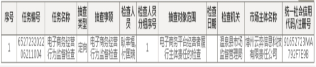 温泉县市场监督管理局2022年“双随机、一公开”抽查第七批次任务公示关于电子商务经营行为监督检查