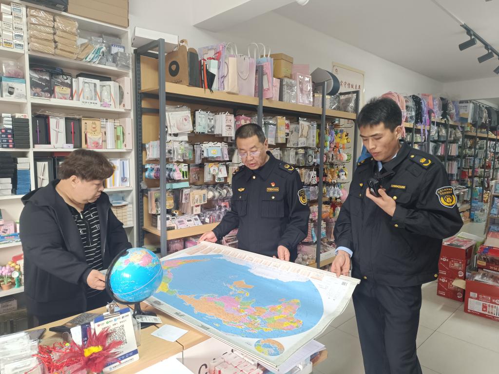 检查人员随机走访了新华书店、五馆一中心等经营场所,核查其出版、印刷及销售地图的合规性,重点检查了地图审图号、地图准确性等问题。同时,向经营者普及了国家版图与地图法律知识,提升了公众辨识“问题地图”的能力。