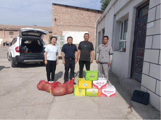 7 月 29 日,慰问组先后走访了泉粮公司哈日布呼镇库点、塔秀库点,实地查看了夏粮收购流程、粮食质量检测、仓储管理等情况,详细询问了当前收购进度、价格波动、农民售粮意愿及一线人员工作生活保障等问题。慰问组与收购人员亲切交谈,对他们顶烈日、战高温,坚守岗位保障夏粮颗粒归仓的辛勤付出表示感谢,并送上矿泉水、西瓜等物资,叮嘱大家在忙碌工作的同时注意防暑降温,确保自身健康和收购工作安全有序推进。