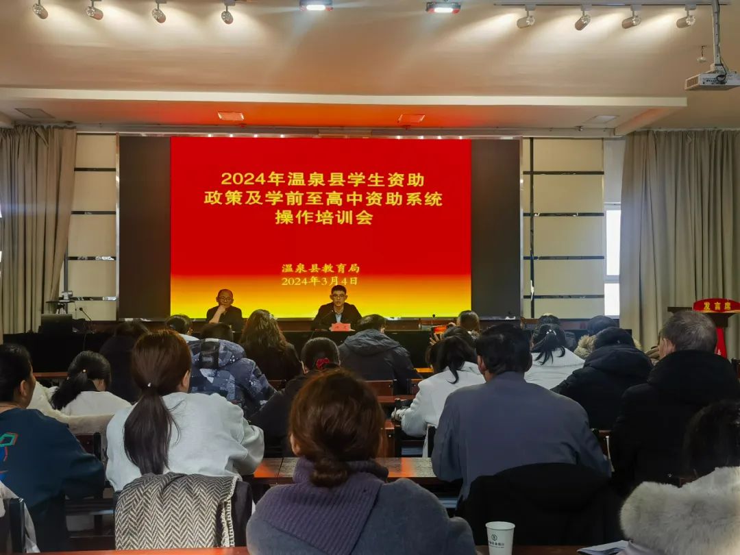 3月4日,温泉县学生资助政策及学前至高中资助系统操作培训会在县教育局召开,全县各中小学、幼儿园负责人员参加了培训。