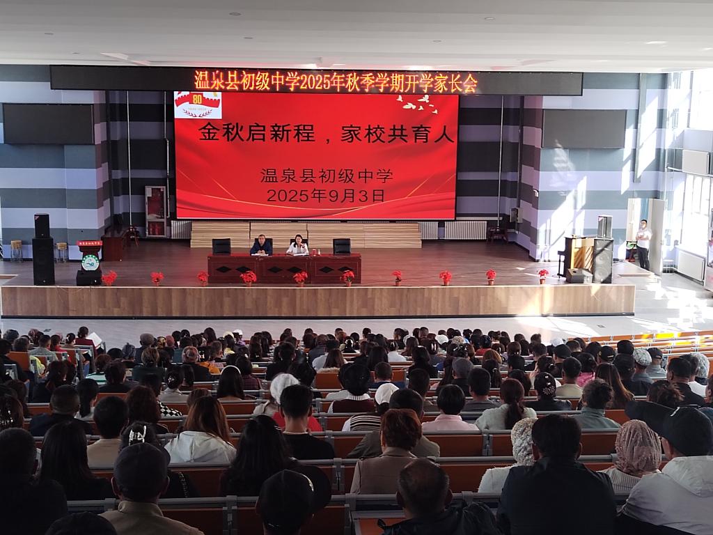 为搭建家校沟通桥梁,助力学生快速适应新学期学习生活,温泉县初级中学于 2025 年 9 月 3 日召开秋季开学家长会,提升家长的安全意识,让家长清晰了解需要重点关注的领域,强调家长在学生离校后的安全监护和责任。