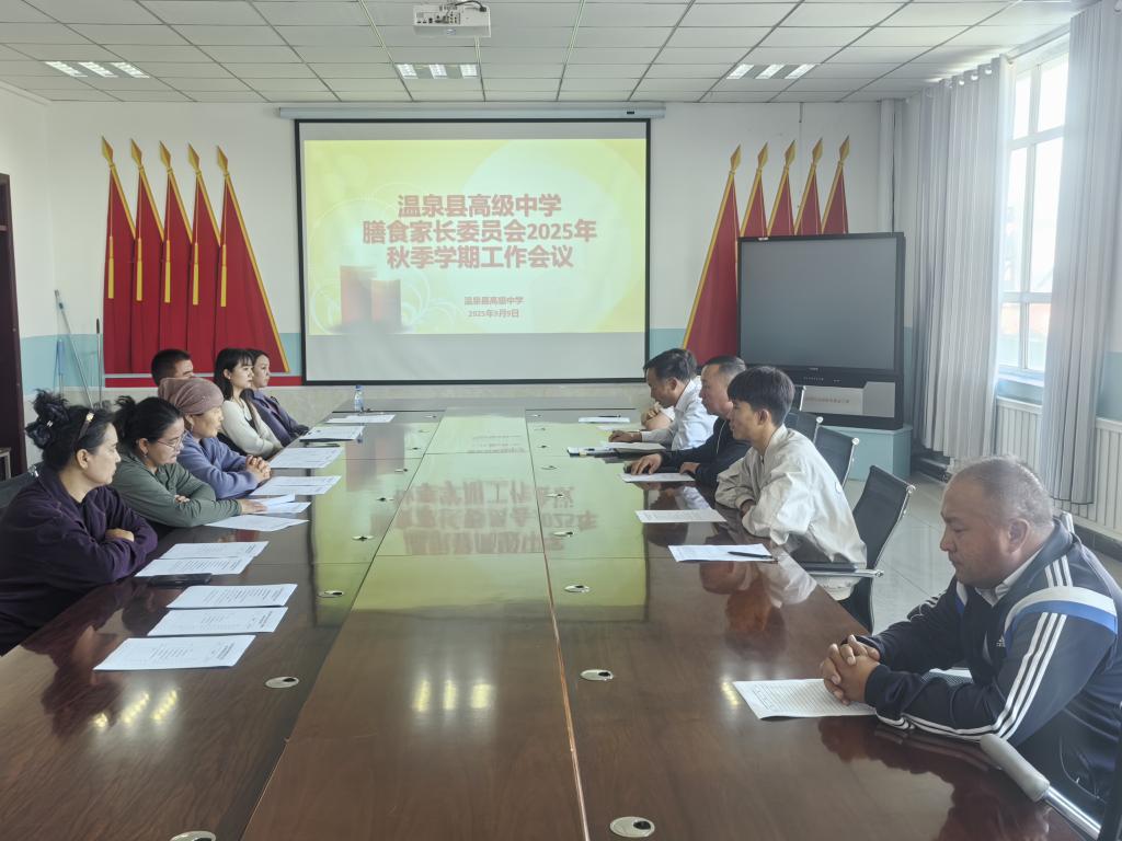 2025 年 9 月 9 日,温泉县高级中学开展膳食监督家长委员会会议, 家长委员会可以定期深入学校食堂后厨,检查食材采购、储存、加工等环节,加强了家长的监督能力。