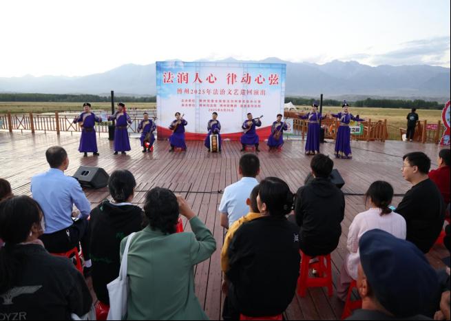 8月26日,“法润人心 律动心弦”2025年法治文艺巡回演出在温泉县湿地百米温廊上演。该活动由博州党委全面依法治州委员会办公室主办,博州司法局、博州歌舞团、温泉县司法局联合承办。