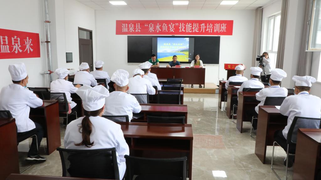 温泉县人力资源和社会保障局党组成员、副局长、技工学校常务副校长皮远霞表示,我们紧紧围绕温泉县“旅游强县”发展战略目标,根据本地旅游产业对技能人才的需求设置,在短期内能重点培养和建设一支技术过硬、具备良好职业素养的“泉水鱼宴”技能人才队伍,充分发挥技工学校“培训阵地”作用,针对性的匹配专业课程,开展专题培训,为温泉县特色旅游发展培养技能人才。