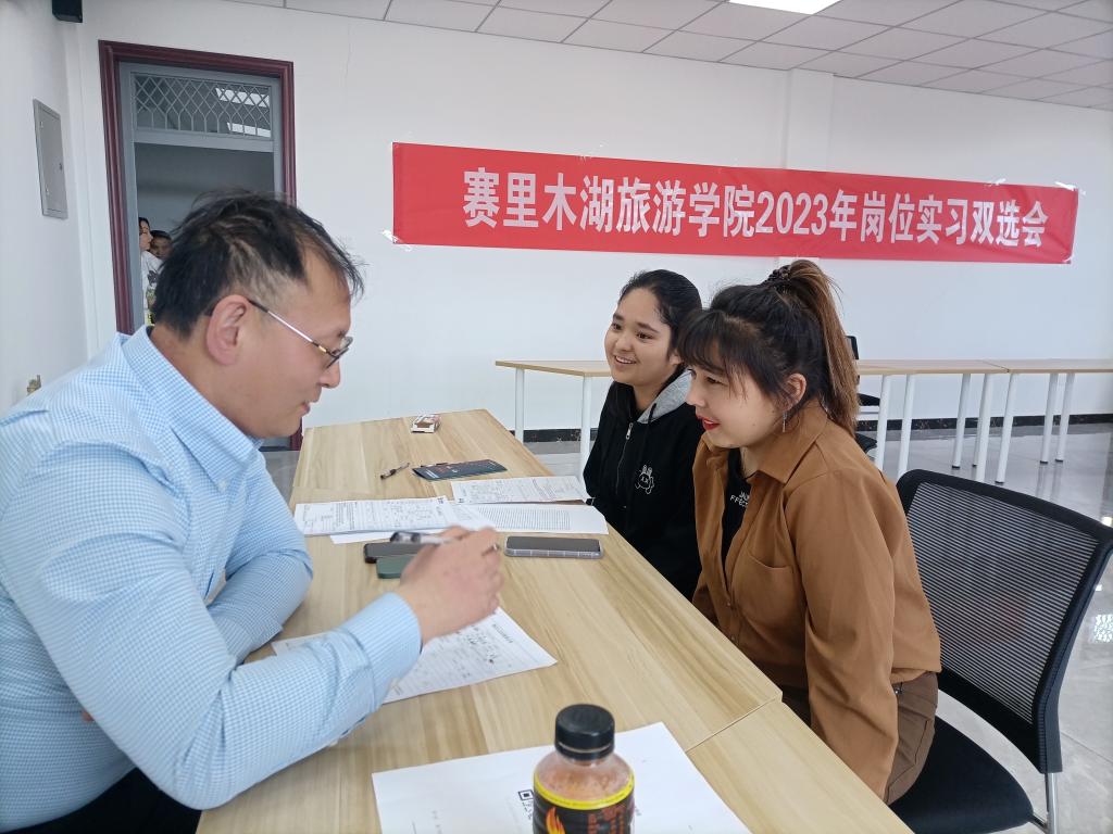 此次校企合作是通过实地调查了解需求、召开座谈会、企业学生双向面试和选择的方式进行。4月26日,在博尔塔拉职业技术学院赛里木湖分院进行企业学生双选会,共有102名学生选择温泉县14家企业达成实习协议。