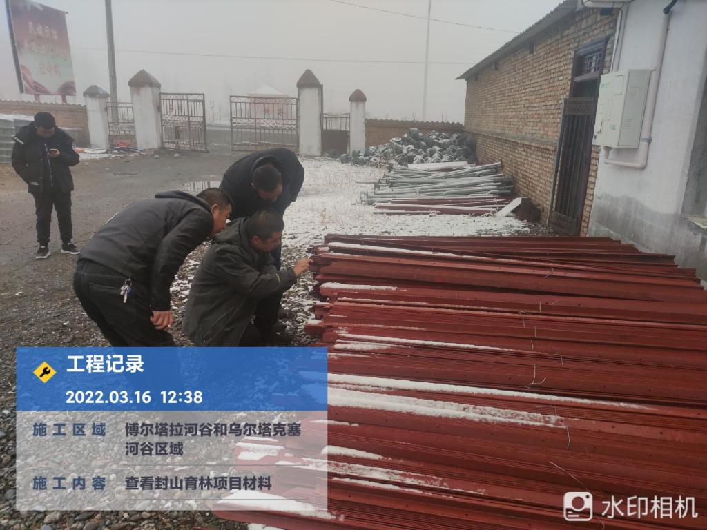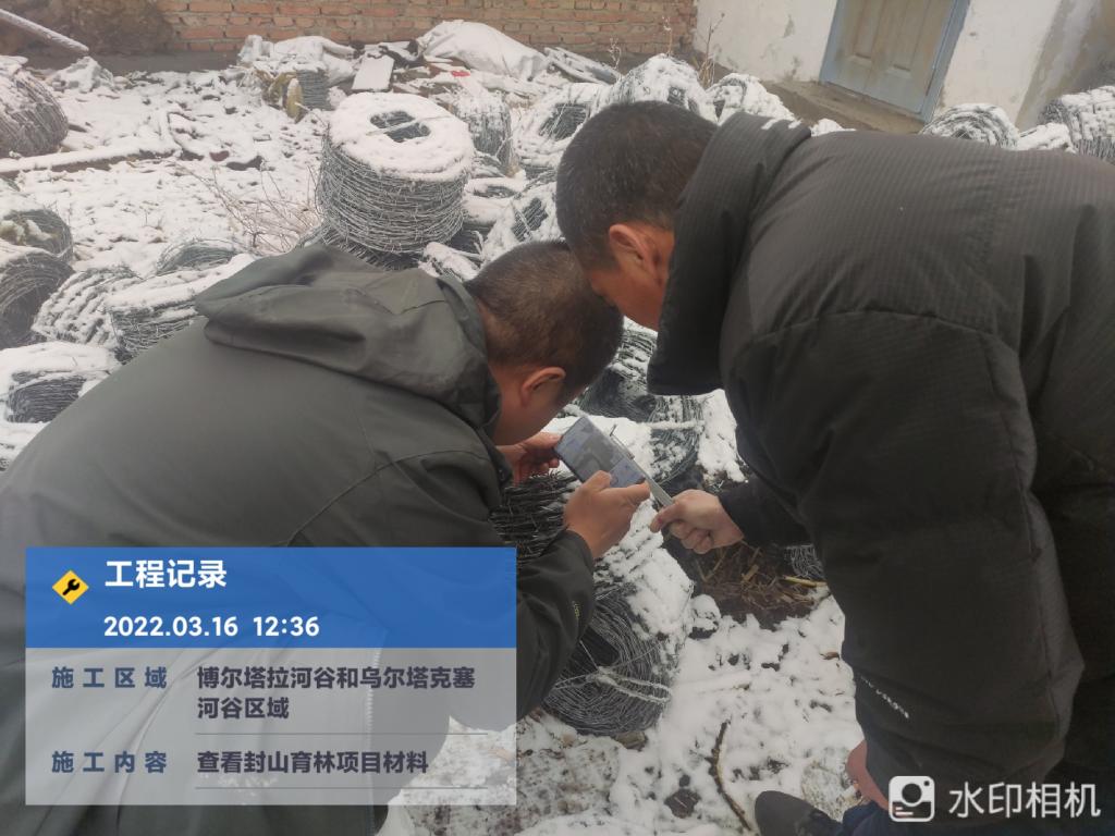 为了切实落实我县封山育林项目开展进度,3月16日温泉县自然资源局(林业和草原局)林业工作站干事马晓平、盛磊同首盛建设集团有限公司潘志生监理(第三方监理)、博乐市助民兴建筑劳务有限公司付杰华(施工方)共同查看了项目材料质量情况,并按照项目实施方案要求对建设项目材料进行检测,经检测使用材料都符合项目标准。