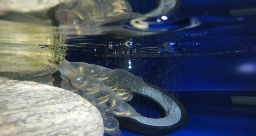 6月9日,在温泉县新疆北鲵科研宣教中心人工孵化展示室的孵化池内,一条条新疆北鲵“宝宝”陆续从卵胶囊中破卵出生,工作人员立即将北鲵“宝宝”捞出,进行单独喂养。