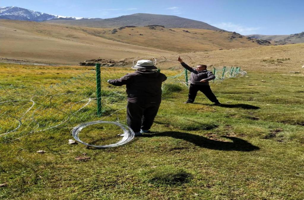 北鲵管理站工作人员对损坏的网围栏进行维修