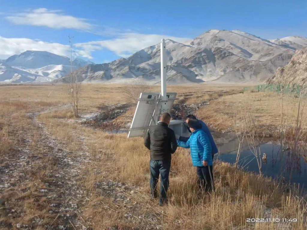 北鲵管理站副站长巴塔对生态监测设备进行查看