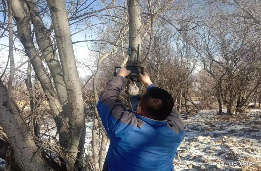 北鲵管理站干部巴依更换红外线相机
