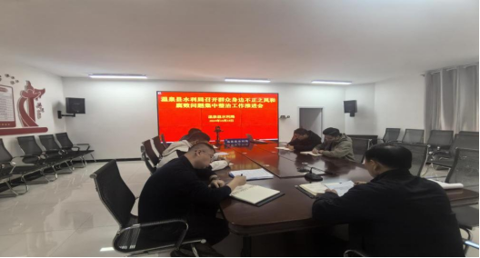 10月18日温泉县水利局召开群众身边不正之风和腐败问题集中整治工作推进会。会议传达学习了在全区水利系统整治群众身边不正之风和腐败问题交流会暨农村供水高质量发展现场观摩会上的讲话精神及自治州纪委监委群众身边不正之风和腐败问题集中整治工作会议精神,听取了部分科室、站所集中整治工作情况,并就县水利系统下一步做好集中整治攻坚战作了安排部署。局机关各科室、水管站及各所负责人参加此次会议。