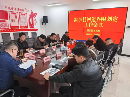 为深入贯彻习近平总书记治水护水节水用水的重要论述,3月19日下午,温泉县水利局组织召开河道界限划定工作会议。各乡镇(场)、87团、88团分管河湖领导及业务骨干参会。