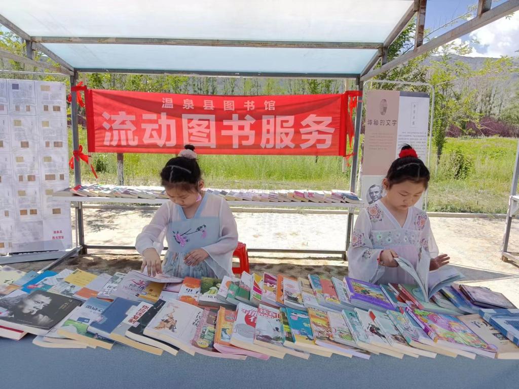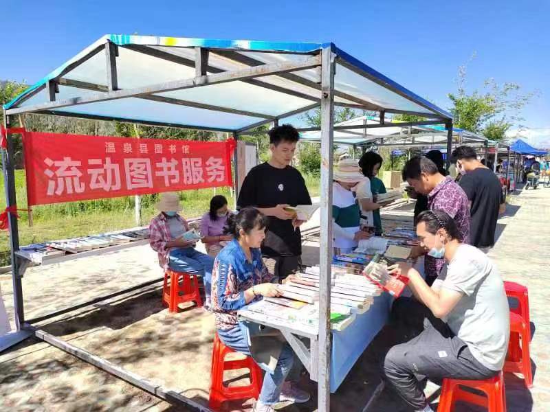在第六届香紫苏文化旅游节期间,为进一步丰富基层居民群众的精神文化生活,推进文化知识资源共享,提升公共文化服务效能,打通公共图书服务“最后一公里”,营造浓厚的社会文化氛围。温泉县图书馆于7月16日组织工作人员到扎勒木特乡博格达尔村开展“全民阅读·共享书香”——图书流动服务走基层活动,充分发挥图书馆的资源优势,为基层居民群众提供流动图书服务。