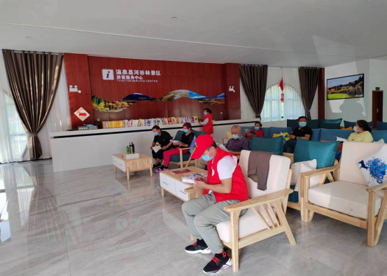 深圳游客于海然说:我慕名来温泉县游览来到河谷林游客服务接待中心,注意到有个流动图书馆服务点,里面的图书内容挺丰富,介绍了不少当地的历史文化,边看美景边了解相关知识,挺好的。