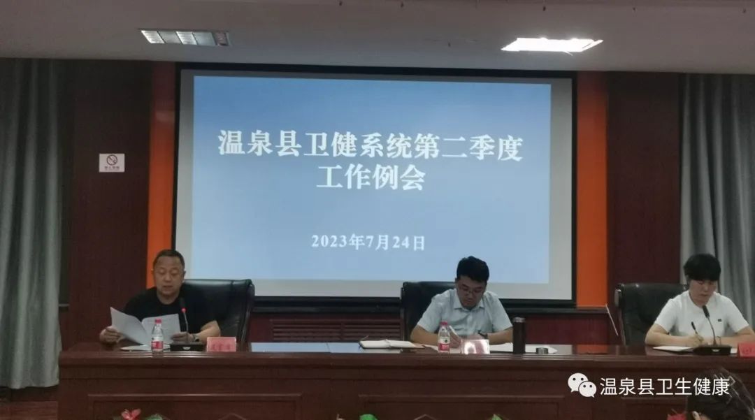 为进一步提炼工作经验,查找不足与短板,细化工作任务,7月24日,温泉县卫生健康委组织各科室、县直医疗卫生单位、各乡镇场卫生院召开卫生健康工作2023年第二季度工作例会。