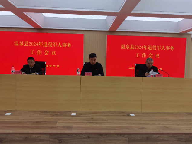 3月13日,温泉县召开2024年退役军人事务工作会议。会议以习近平新时代中国特色社会主义思想为指导,深入学习贯彻党的二十大精神,全面贯彻落实习近平总书记关于退役军人工作重要论述,认真贯彻落实中央、自治区、自治州退役军人事务工作会议精神和县党委、县政府要求,紧扣新时代新征程全县退役军人工作高质量发展目标,全力推动温泉县退役军人工作高质量发展,为在中国式现代化进程中更好建设团结和谐、繁荣富裕、文明进步、安居乐业、生态良好的美丽新疆作出温泉贡献。