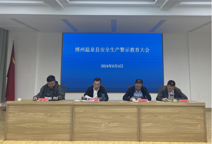 2024年6月4日,温泉县应急管理局召开温泉县安全生产警示教育会,会议由县党委常委、政法委书记袁庄同志主持,州应急管理局党委书记、副局长谢诚同志、州应急管理局二级调研员王新荃同志、县人民政府副县长樊宏权同志出席。县应急管理局、部分安委会成员单位分管负责同志和各企业负责人参加会议。