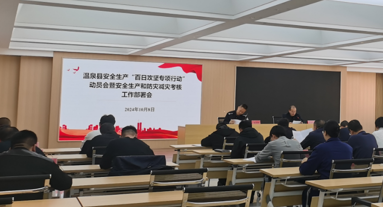 为深入学习贯彻习近平总书记关于安全生产、防灾减灾重要论述和指示批示精神,严格落实自治区、自治州、温泉县党委政府工作部署,10月8日下午,温泉县安委会办公室组织各乡镇场、各成员单位召开2024年安全生产“百日攻坚专项行动”动员会暨安全生产和防灾减灾考核工作部署会议。