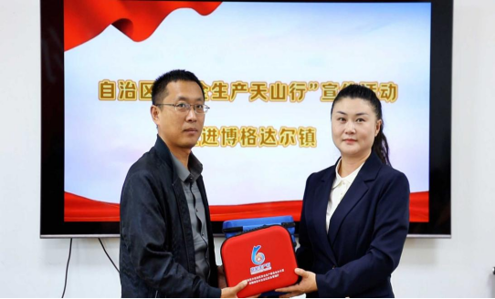宣讲团为博格达尔镇赠送安全宣传书籍及应急救援急救包