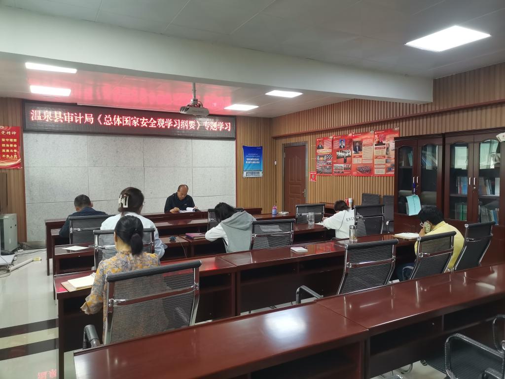 6月9日,温泉县审计局召开专题会议,深入学习《总体国家安全观学习纲要》,县审计局党组书记王朝伟主持会议并讲话。全体干部职工参加会议并结合工作,交流学习体会。