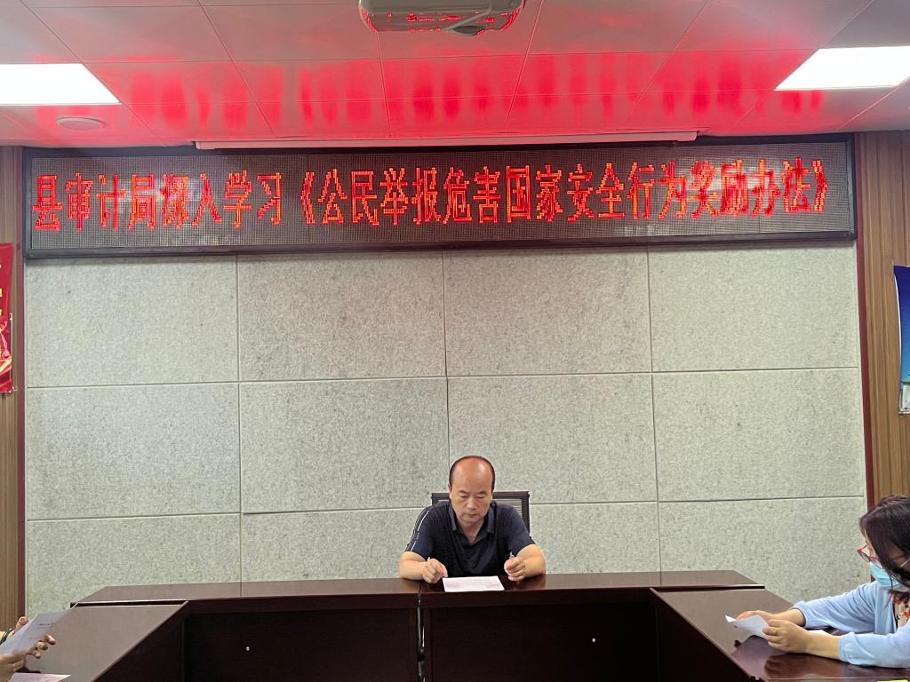 此次政治理论学习是在全国大力宣传《公民举报危害国家安全行为奖励办法》的形式下开展的。不断学习新的法律法规,是审计干部适应新时代工作的必然要求,是普法宣传工作的必备本领,是作为国家工作人员的本职要求。近年来,县审计局将新法规学习纳入政治理论学习的重要部分,通过学习达到提高干部能力素质,全力为依法审计提供理论基础。