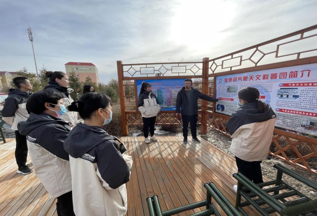 首先温泉县审计局全体干部职工前往温泉县气象局,在讲解员的带领下,一同参观了气象科普园。温泉县气象科普园占地面积约50亩,包括全球第四架太阳磁场望远镜、气象科普园户外园区、气象天文科普馆、综合气象业务平台等,科普园户外园区涵盖气象观测场、气象预警信号墙、“科技强国”主题科普长廊等科普设施。审计干部通过气象天文知识展板、实物展柜、互动演示模型等全方位了解气象天文科普知识。