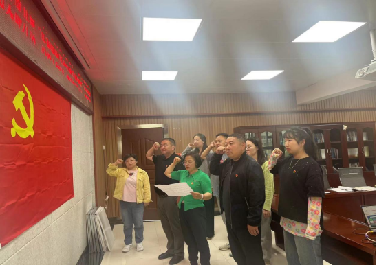 图:在刘风枝同志的带领下,我局机关党支部全体党员面对庄严的党旗,激情澎湃的宣誓,重温了入党誓词。