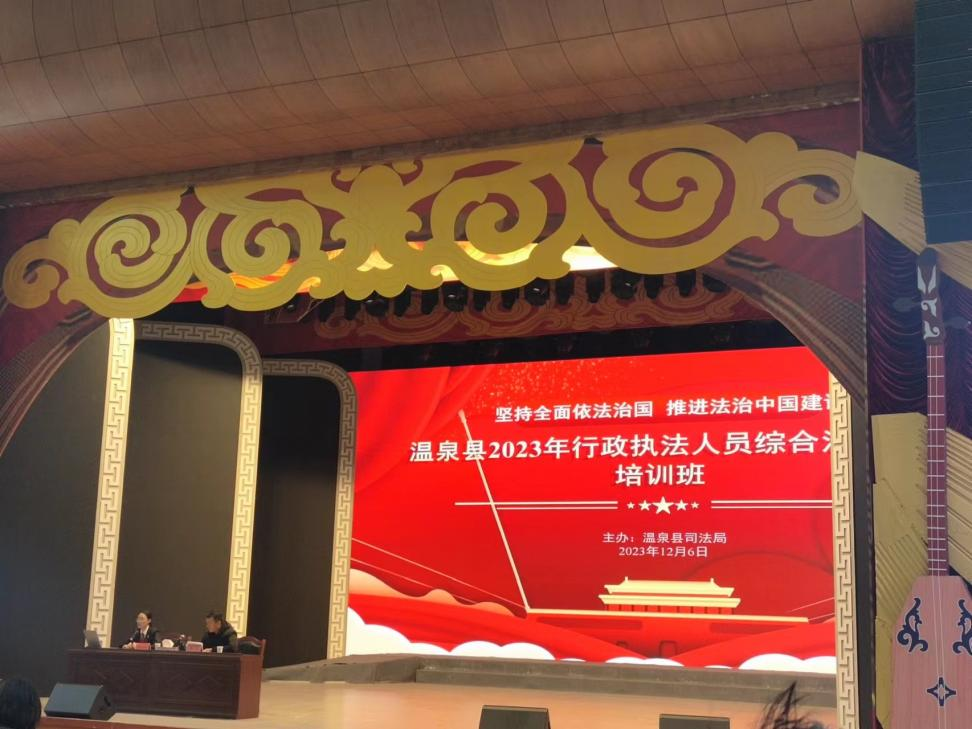 2023年12月6日,温泉县审计局全体执法人员参加“温泉县2023年行政执法人员综合法律知识培训班”,了解如何提起行政复议、复议案件管辖权变动等新修订的行政复议法突出亮点。