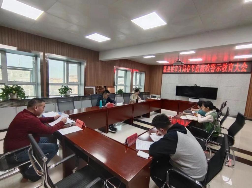 龙行龘龘,欢度廉节。春节将至,为深入贯彻落实中央八项规定及其实施细则精神,不断深化“洁在心·廉在行”廉洁理念,筑牢拒腐防变的思想道德防线,提高反腐倡廉、抵御风险能力,持续营造文明节俭、健康安全、风清气正的浓厚节日氛围,2月7日,温泉县审计局组织全体干部职工开展了节前廉政警示教育大会。