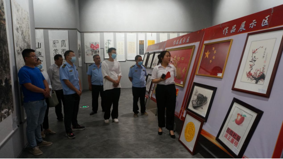 温泉县市场监督管理局党员干部在温泉县参观廉政文化展专心听讲解员的讲解