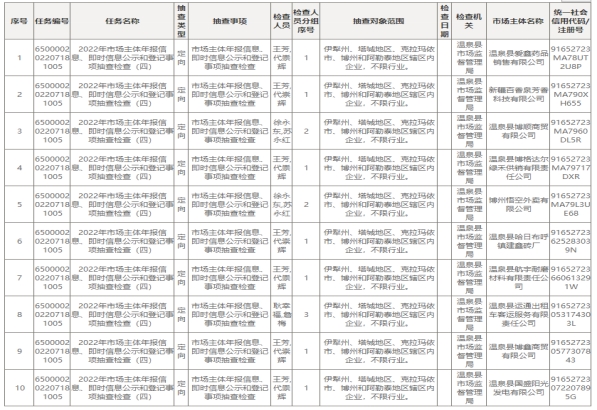 自治区局下发关于2021年市场主体年报信息、即时信息公示和登记事项抽查检查(四)任务公示