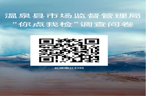 食品安全“你点我检”开始啦!“你点我检”就是“抽群众之所盼、检群众之所忧”,进一步提升公众对食品安全的关注度、参与度和感知度。快跟温泉县市场监督管理局说说您在食品安全上“急难愁盼”的问题。温泉县食品安全“你点我检”调查问卷投票活动开始啦!抽检什么?你说了算!!!扫二维码参与: