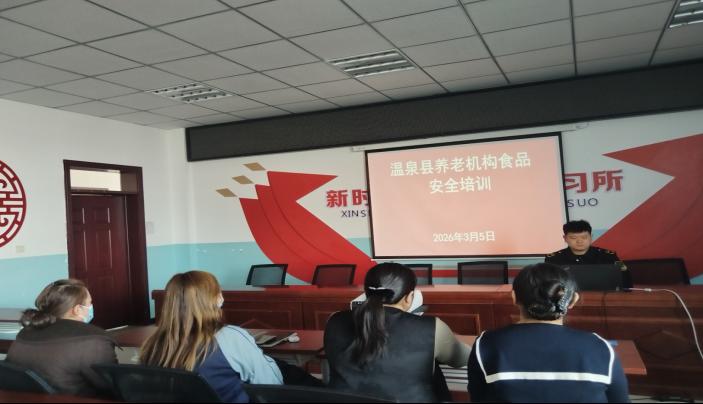 为深入落实养老服务突出问题专项整治工作,温泉县市场监督管理局于2026年3月5日组织开展全县养老机构食品安全专题培训。全县2家养老机构负责人、食品安全总监、安全员共4人参训。
