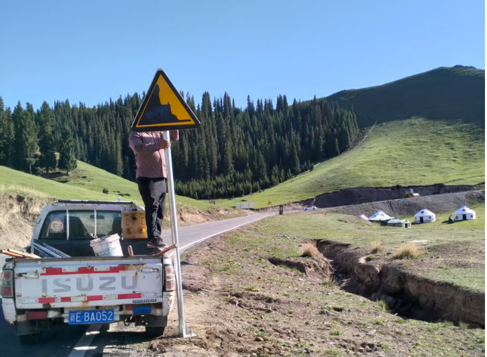 在公路养护方面,养护单位加大了对公路沿线设施的巡查频率。对公路边坡、挡土墙、涵洞、排水系统等进行全面排查,及时清理边沟、涵洞杂物,修复损坏的排水设施,确保排水畅通。针对易发生滑坡、泥石流等地质灾害的路段,设置警示标志。自查期间,对 X208 线、X210 线沿线 12 处减速带进行了拆除,对沿线 12 处路面坑槽进行了修补;对路肩及边坡杂草、树木进行了清理,新增 14 块安全标牌。