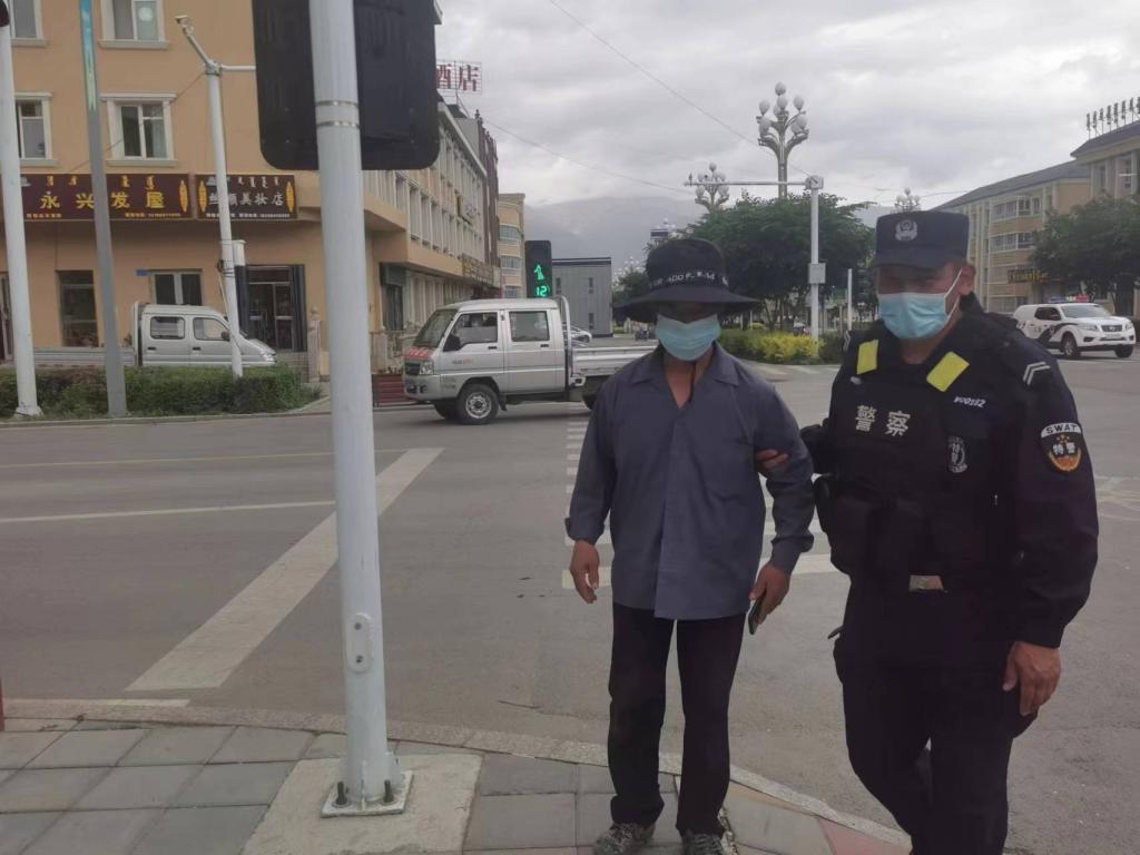 民警在执勤过程中发现,一名老人一瘸一拐准备要过马路,该路口车流量较多,民警连忙上前搀扶老人,引导老人安全通过马路。