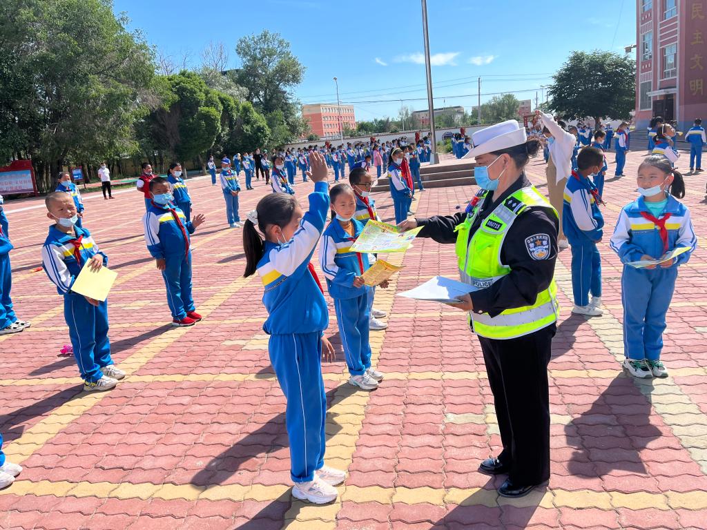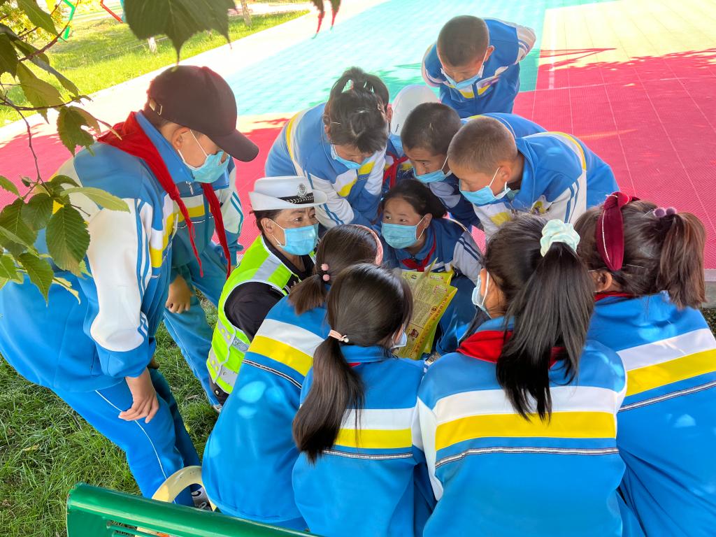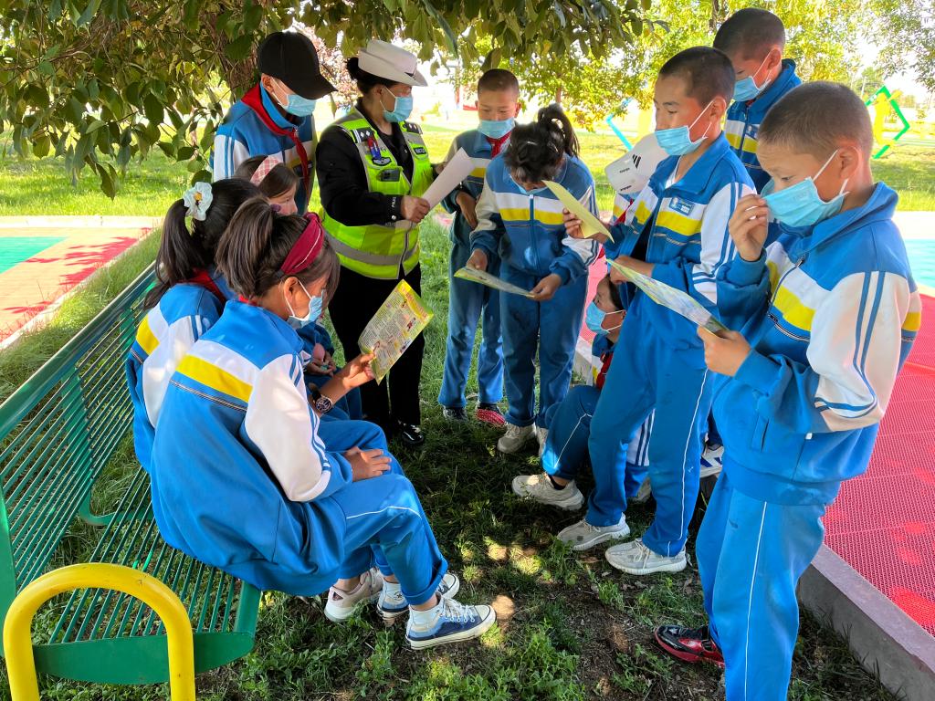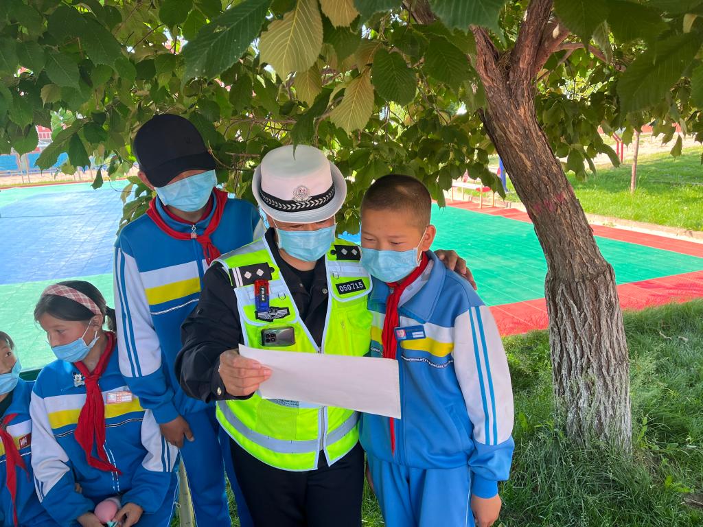 为全面提高青少年的交通安全意识和自我保护能力,进一步加强平安校园建设,预防和减少涉及青少年道路交通事故的发生,温泉县公安局民警走进查干屯格乡学校,开展交通安全宣传活动。
