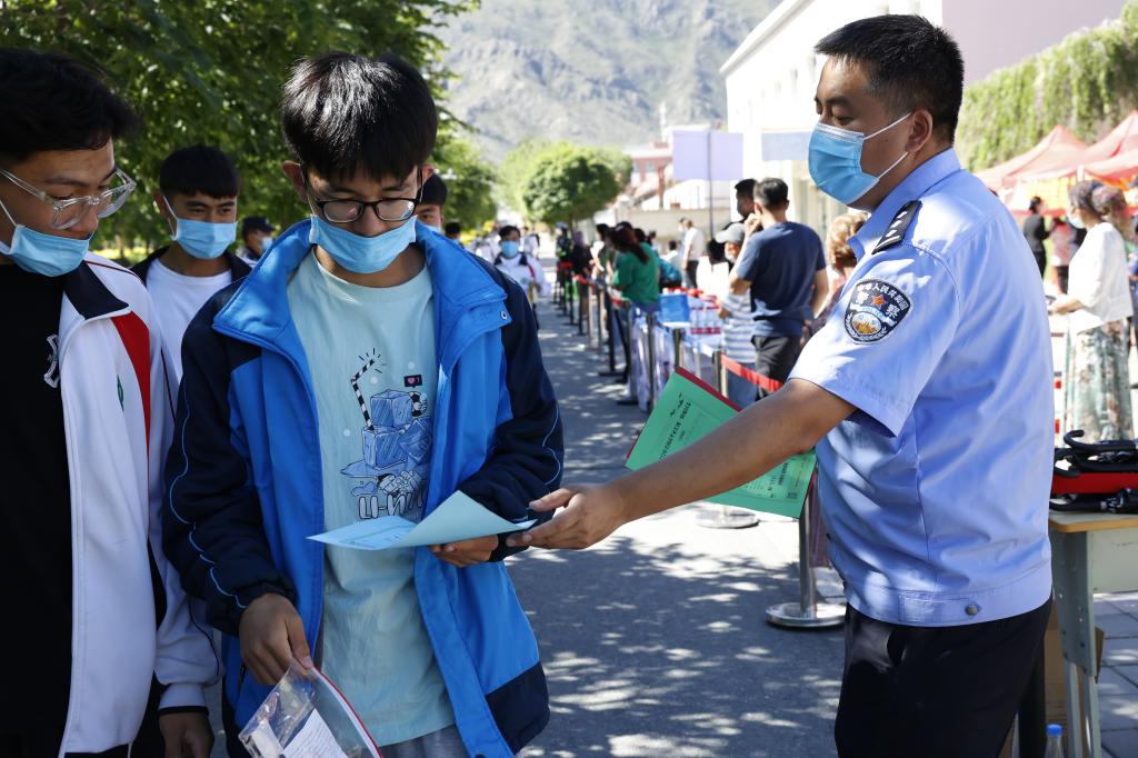 在温泉县高级中学考点,趁家长在考场外等候考场期间,温泉县公安局刑侦大队民警与家长聊起了反诈。“孩子考试,我们家长也不能松懈,尤其要注意防范涉考骗局。”民警针对高考后多发的冒充招生人员填报志愿、内部招生名额、特招等诈骗警情对现场家属开展反诈宣传,揭露不法分子实施诈骗手段,提醒考生家长注意防范,切实保护广大考生及家长合法权益。与此同时,民警还推广了“国家反诈中心”APP,引导广大考生及家长安装注册并开启防护。
