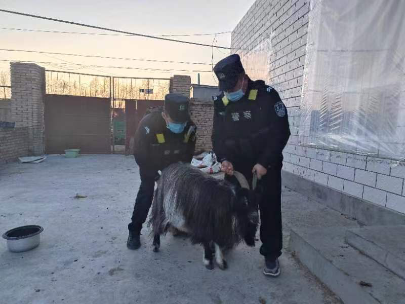 3月2日,有群众报警称在查干苏木村发现一只山羊在马路上溜达且无人看管,存在安全隐患。温泉县公安局巡逻民警立即前往现场,发现确有一只“淘气”的山羊在马路上乱串,经过民警排查,该羊是养殖户沙女士家的羊,民警化身“羊倌”,将羊赶回了沙女士家。