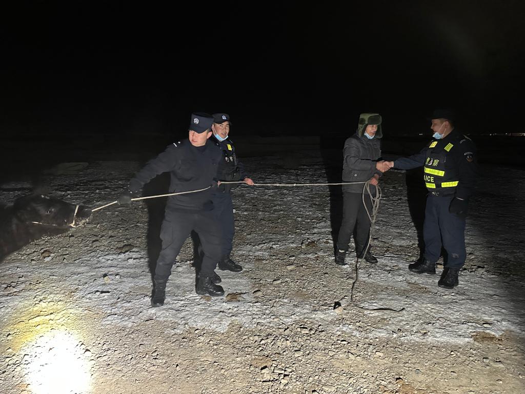 3月1日,有群众因自家小牛滑落干渠,自己无力救出,向民警求助。民警得知后便带好救援装备迅速赶往救助,最终在警民同心不懈之下,将小牛犊拖出干渠。