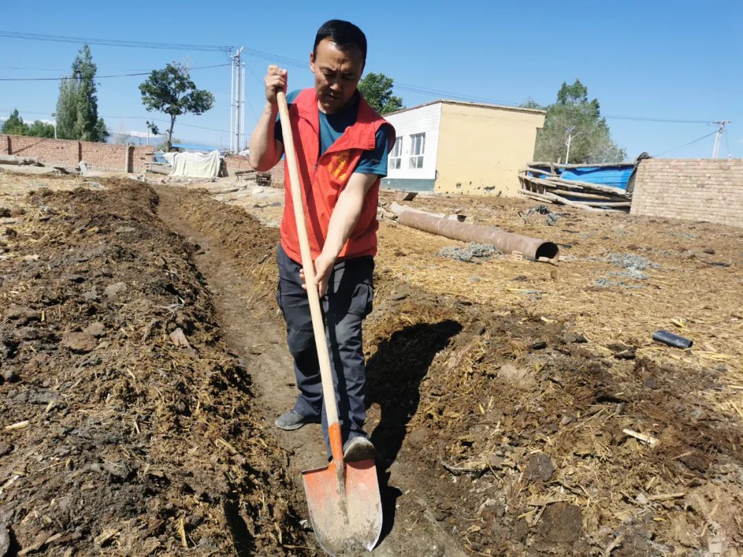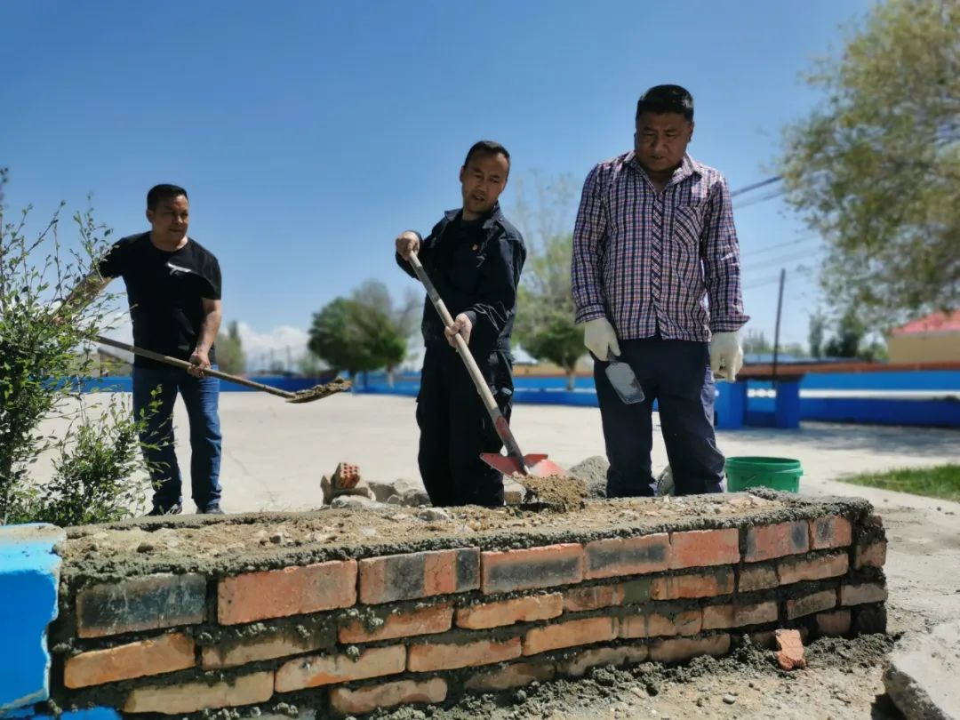 温泉县公安局驻村工作队第一书记阿·杰民在了解到老人家中的困难后,把事记在了心里。对村队居民及院落布局熟知的他此时也犯起了难,原来村子里灌溉用水分布是自己不了解的内容。经过多次查看附近水源后,他发现在房屋北侧有一条渠道,可以引水经过隔壁住户亚先生家的牛棚和院墙,进入素大爷的家中,再通过菜地引出至渠道中,既解决了牛羊饮水的情况,也解决了浇灌菜田的需要,一举两得。在与乡镇水管站负责人和隔壁住户亚先生顺利沟通,双方都表示没有影响后,阿·杰民与努尔艾迪力撸起了袖子,开始了这项“改造工程”。