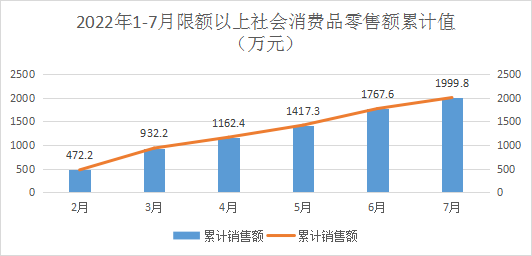 截止7月末,温泉县限额社会消费品零售总额为1999.8万元,同比增长17.9%,增幅较1—6月回落3.5个百分点。