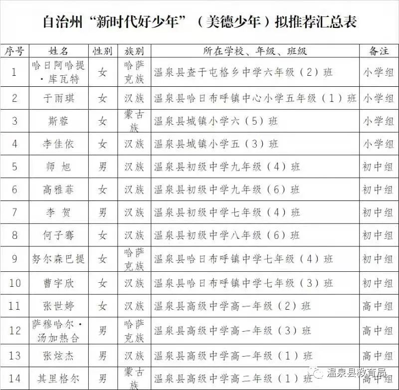 现将拟推荐2021年度自治州“新时代好少年(美德少年)”的学生名单予以公示,接受社会公众监督。