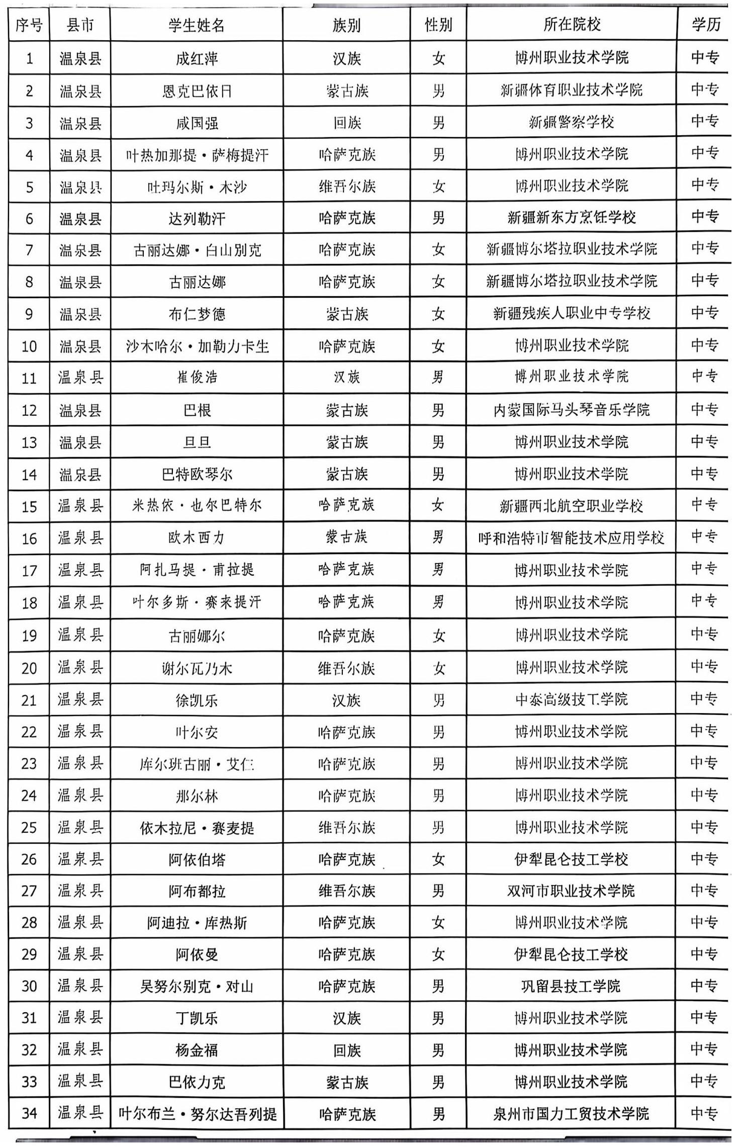 根据关于印发《自治州实现巩固拓展教育脱贫攻坚成果同乡村振兴有效衔接实施方案(2021-2025)》的通知(博州教发【2021】80号)文件要求,经温泉县教育局认真统计、比对、审核,提出拟享受助学补助学生名单。现将拟享受助学补助名单予以公示,接受广大干部群众监督。如发现相关问题,可通过电话、面谈等形式反映,我们将认真进行受理。公示期内若无异议,将提交县财政局申请雨露计划助学补助金。