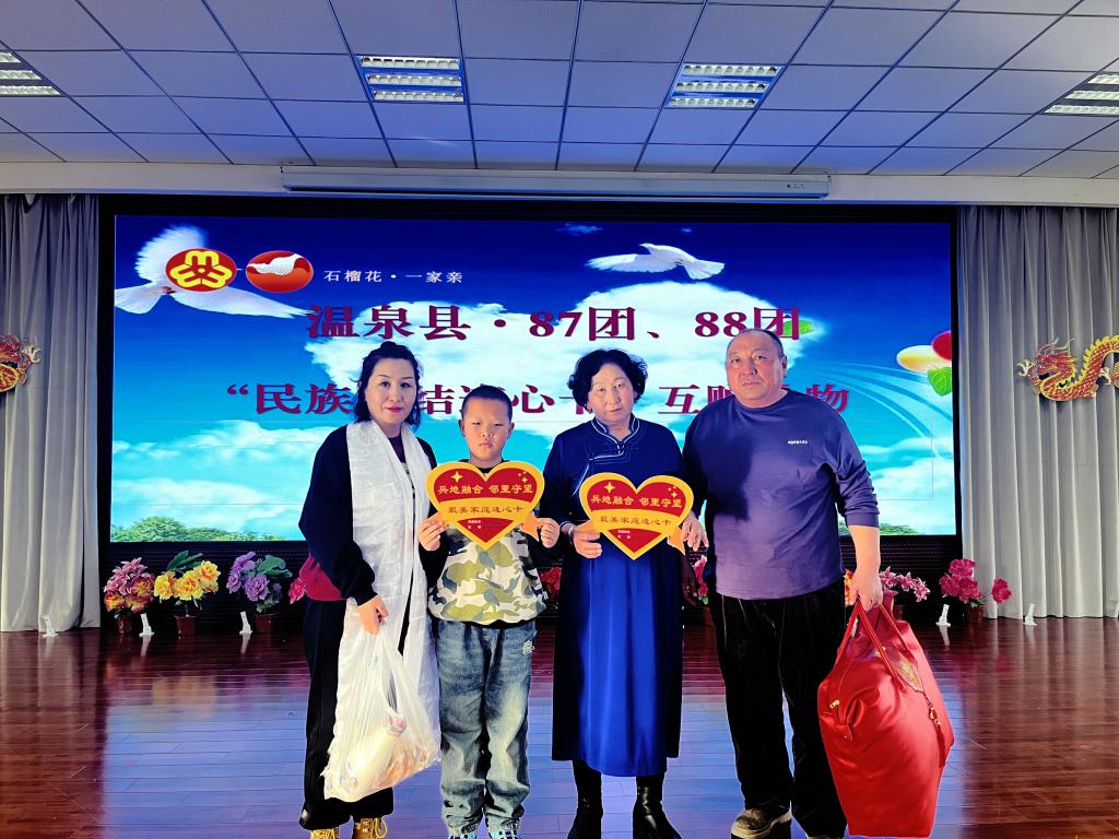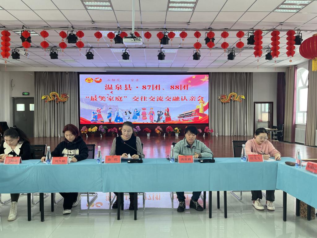 来自温泉县及87、88团的20户“最美家庭”在博格达尔镇幸福社区三楼会议室召开了交流座谈会。县党委统战部领导同志在致辞中说到,今年来,温泉县深入贯彻落实习近平总书记关于新疆工作、兵团工作的重要指示批示精神,全面落实以习近平同志为核心的党中央关于兵地融合发展的决策部署,牢固树立“一盘棋”思想,深入推进与兄弟团场87、88团的工作融合发展、走深走实,近年来温泉县妇联开展形式多样的交往交流交融互动,为铸牢中华民族共同体意识、深化民族团结进步贡献了巾帼力量。