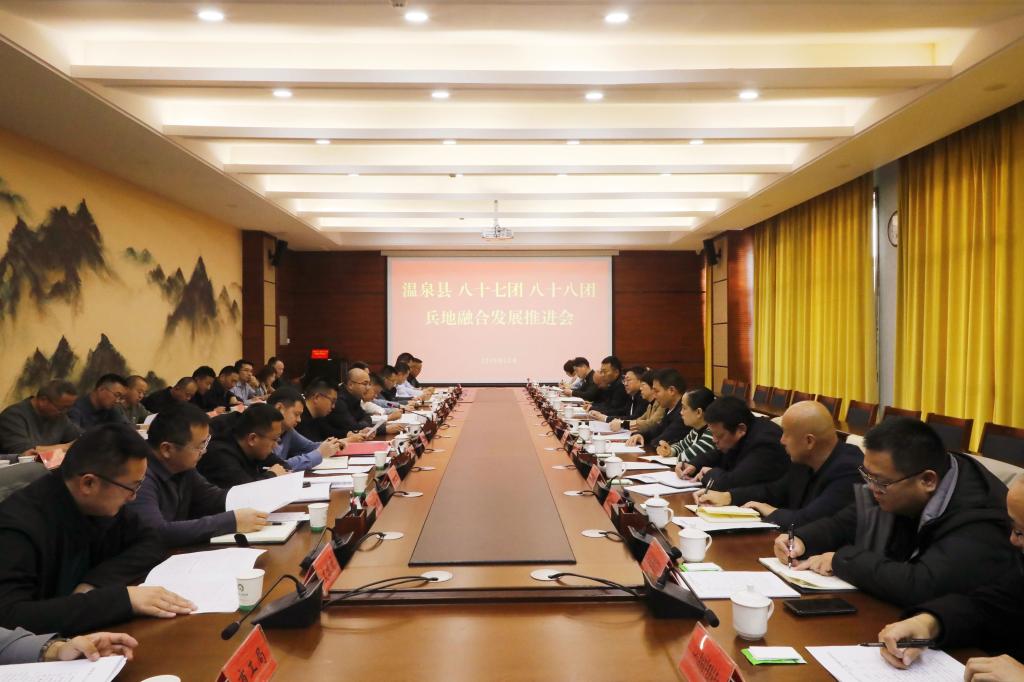 12月30日,温泉县与第五师八十七团、八十八团召开兵地融合发展推进会,共商兵地协同创新之策,促进各领域深度融合发展。