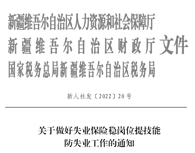 为认真贯彻落实党中央、国务院和自治区党委、人民政府有关决策部署,充分发挥失业保险保生活、防失业、促就业功能作用,助力稳就业保民生,根据《人力资源社会保障部财政部国家税务总局关于做好失业保险稳岗位提技能防失业工作的通知》(人社部发〔2022〕23号),经自治区人民政府同意,现就有关事项通知如下: