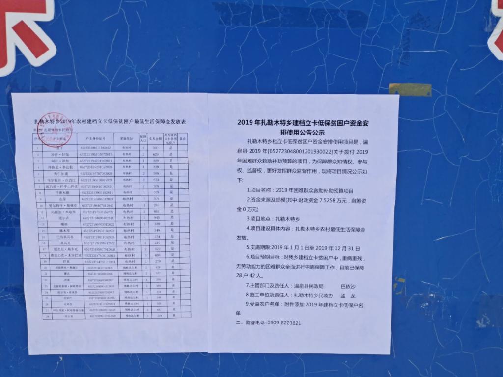 经县扶贫开发领导小组研究确定,2019年[652723048001201930022]关于拨付2019年困难群众救助 补助预算的项目由县民政局(单位)实施1个,涉及资金207万元,现将项目有关情况公示如下: